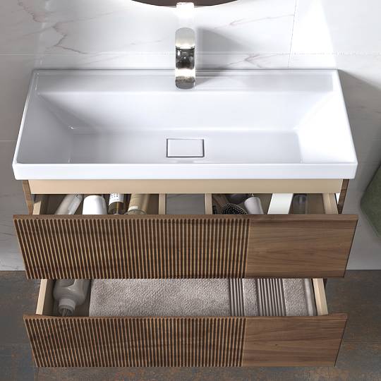 Тумба под раковину подвесная Velvex Mondi 308, 80 см: 2 выдвижных ящика.