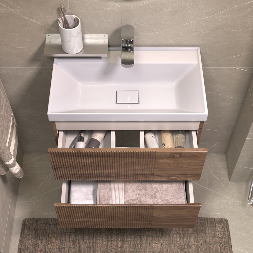 Тумба под раковину подвесная Velvex Mondi 359, 60 см: 2 выдвижных ящика.