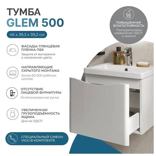 Тумба под раковину подвесная VIGO Glem 334, 50 см купить за