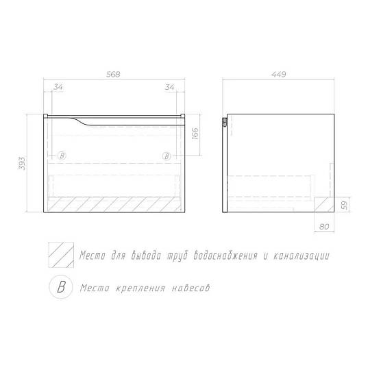 Тумба под раковину подвесная VIGO Neo 339, 60 см. Гарантийный срок 2 года. Монтаж: подвесной. Доводчик: да. Нажимной механизм: нет.
