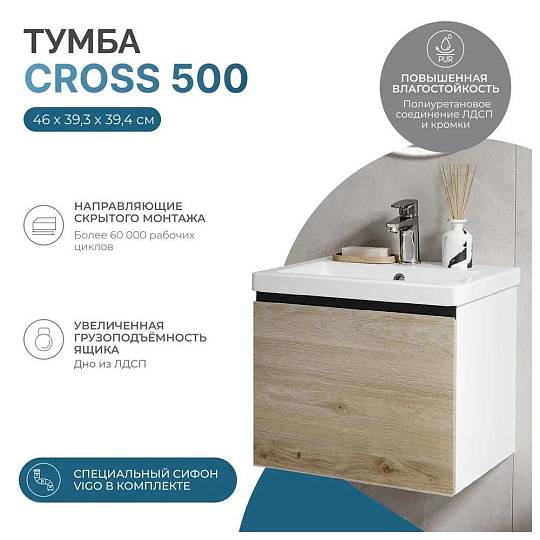 Тумба с раковиной напольная VIGO Cross 402-com, 50 см купить за 0 руб.
