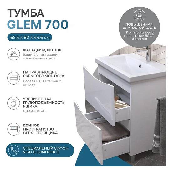 Тумба с раковиной напольная VIGO Glem  323-com, 70 см. Ракавина в комплекте.