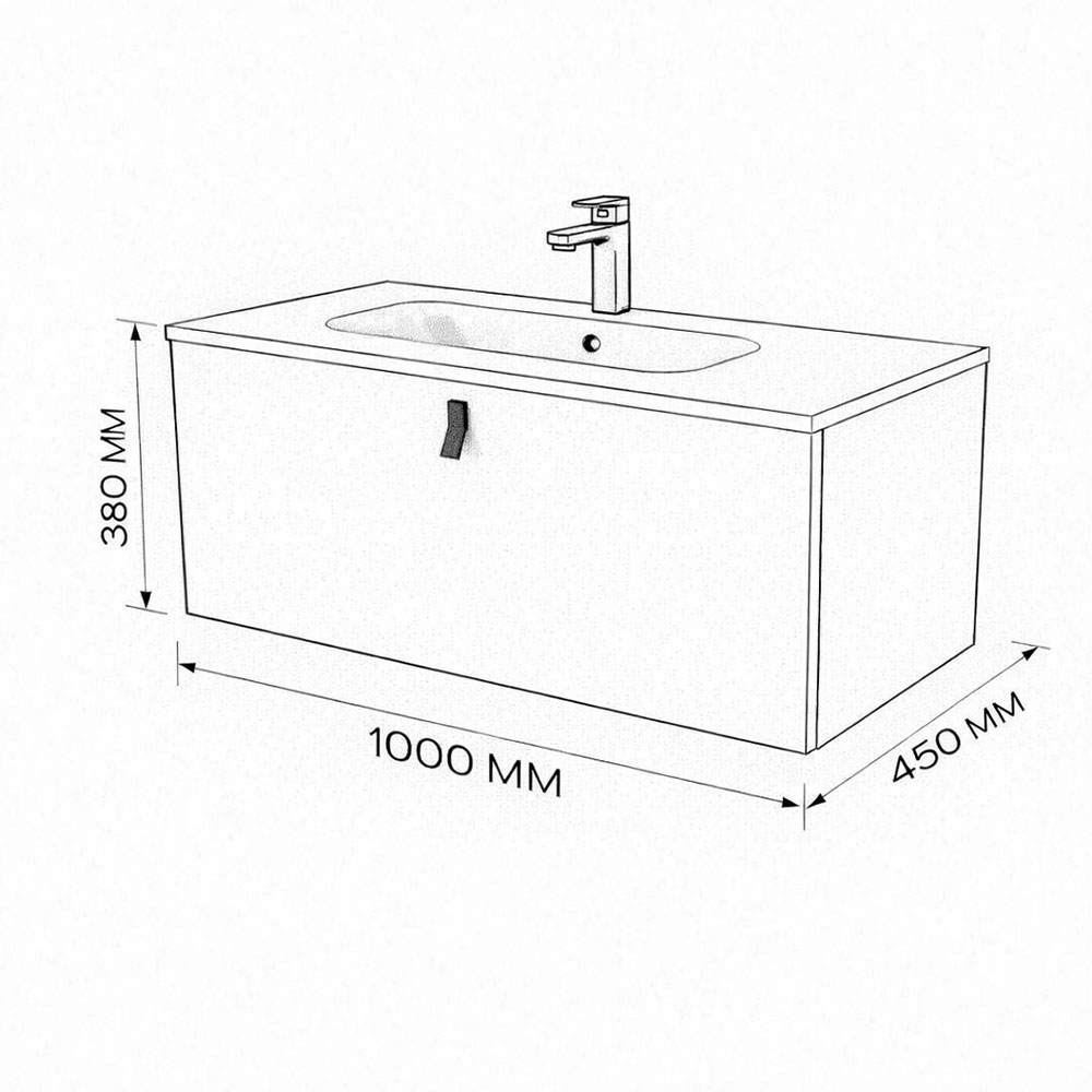 Тумба с раковиной подвесная (100см) Terminus Kontur KON101001200001O, венге/графит. Раковина из литьевого мрамора в комплекте: диаметр отверстия под смеситель: 35, диаметр отверстия слива: 45 мм, диаметр отверстия перелива: 30 мм. Ширина тумбы: 1000 мм. Тип фасада: Фасад в шпоне эвкалипта цвета венге. Материал ящиков: ДСП. Количество ящиков: 1. Сифон и данный клапан приобретаются отдельно и в комплект поставки не входят. В тумбе установлена фурнитура Firmax. Система открывания: Металлические ручки . Технология направляющих: Soft-Close, полного выдвижения, с доводчиком. Тумба поставляется в сборе. Гарантийный срок 2 года.