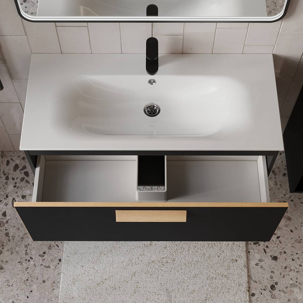 Тумба с раковиной подвесная (100см) Terminus Noto NOT101001099901O, черный soft touch