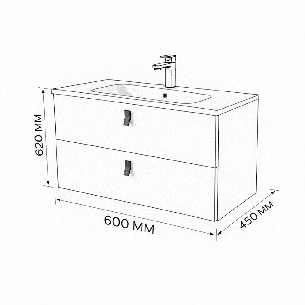 Тумба с раковиной подвесная (60см) Terminus Kontur KON10602200001O, венге/графит. Раковина из литьевого мрамора в комплекте: диаметр отверстия под смеситель: 35, диаметр отверстия слива: 45 мм, диаметр отверстия перелива: 30 мм. Ширина тумбы: 600 мм. Тип фасада: Фасад в шпоне эвкалипта цвета венге. Материал ящиков: ДСП. Количество ящиков: 2. Сифон и данный клапан приобретаются отдельно и в комплект поставки не входят. В тумбе установлена фурнитура Firmax. Система открывания: Металлические ручки . Технология направляющих: Soft-Close, полного выдвижения, с доводчиком. Тумба поставляется в сборе. Гарантийный срок 2 года.