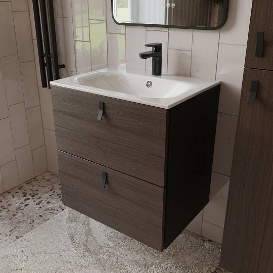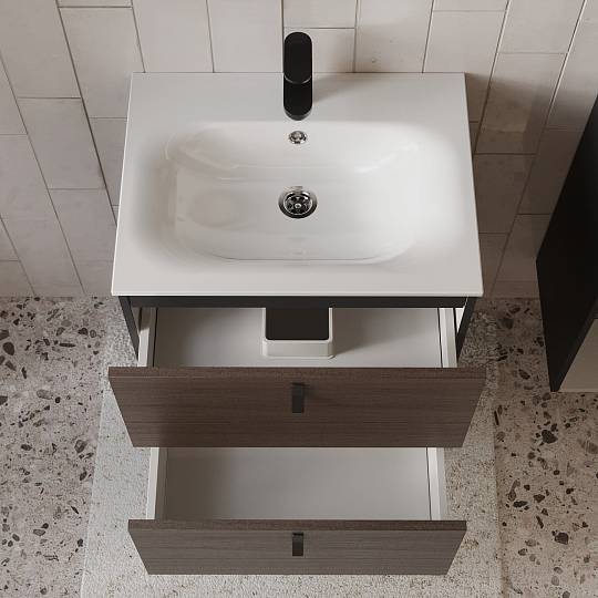 Тумба с раковиной подвесная (60см) Terminus Kontur KON10602200001O, венге/графит купить за 51 290 руб.