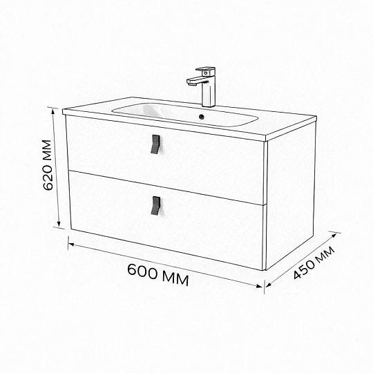 Тумба с раковиной подвесная (60см) Terminus Kontur KON10602200001O, венге/графит