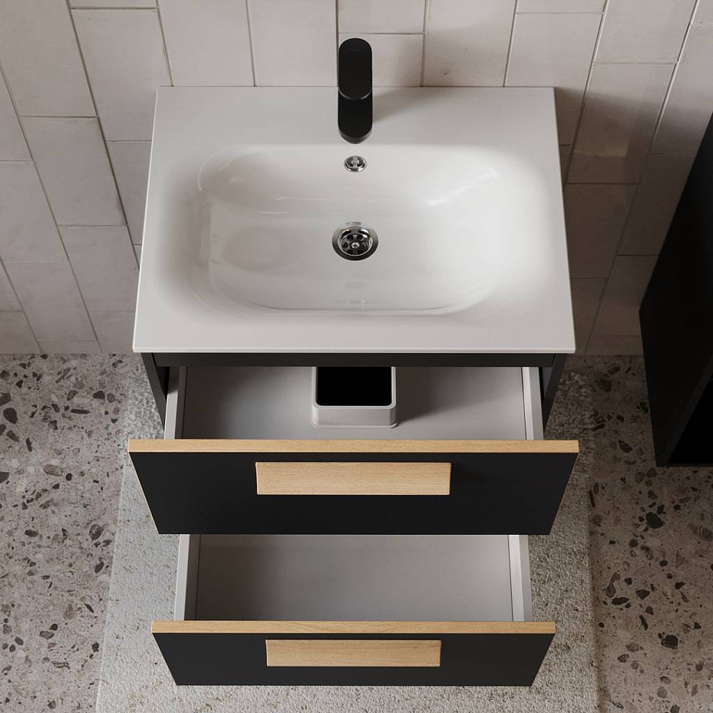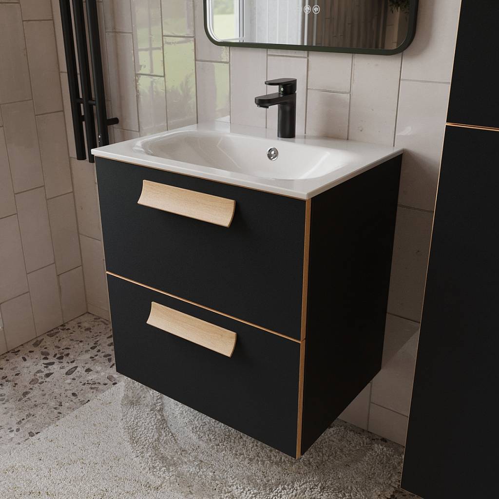 Тумба с раковиной подвесная (60см) Terminus Noto NOT10602099901O, черный soft touch
