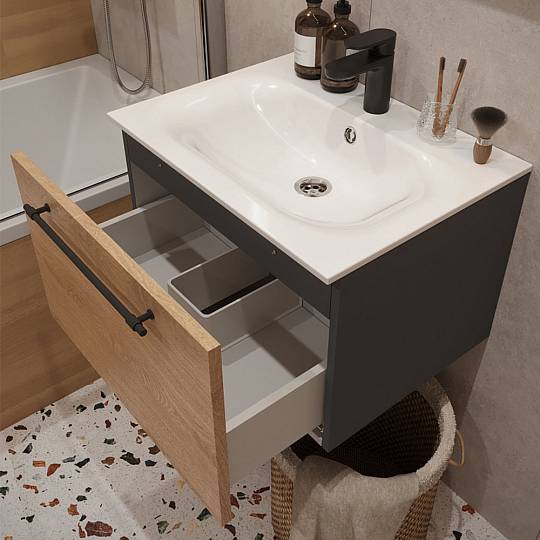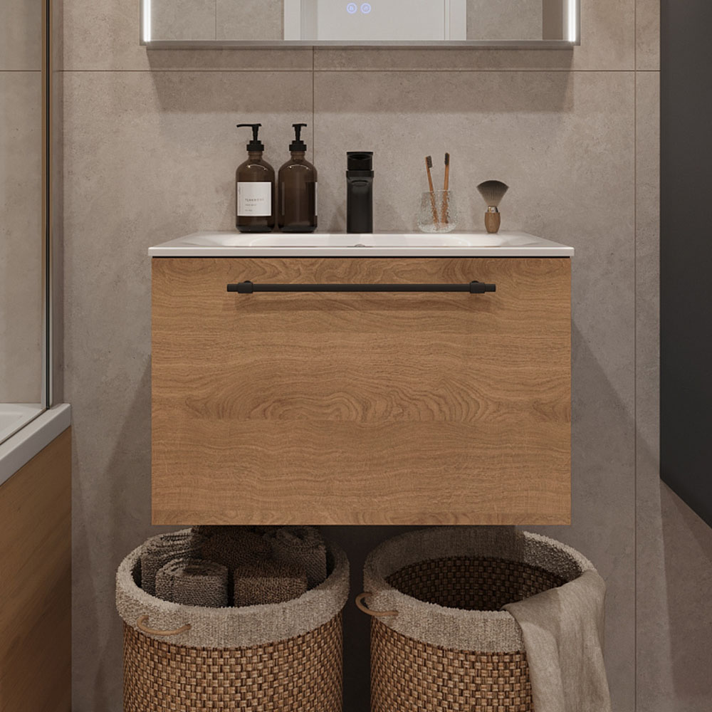 Тумба с раковиной подвесная (60см) Terminus Venta VEN10601300001O, шпон/дуб