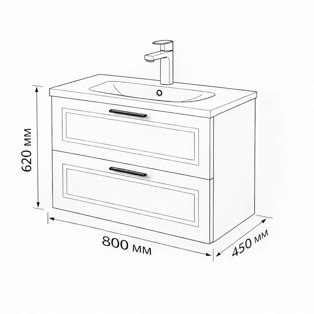 Тумба с раковиной подвесная (80см) Terminus Classik CLA10802200501O, капучино . Раковина из литьевого мрамора в комплекте: диаметр отверстия под смеситель: 35, диаметр отверстия слива: 45 мм, диаметр отверстия перелива: 30 мм. Ширина тумбы: 800 мм. Тип фасада: Филенчатая фрезеровка . Материал ящиков: ДСП. Количество ящиков: 2. Сифон и данный клапан приобретаются отдельно и в комплект поставки не входят. В тумбе установлена фурнитура Firmax. Система открывания: Металлические ручки . Технология направляющих: Soft-Close, полного выдвижения, с доводчиком. Тумба поставляется в сборе. Гарантийный срок 2 года.