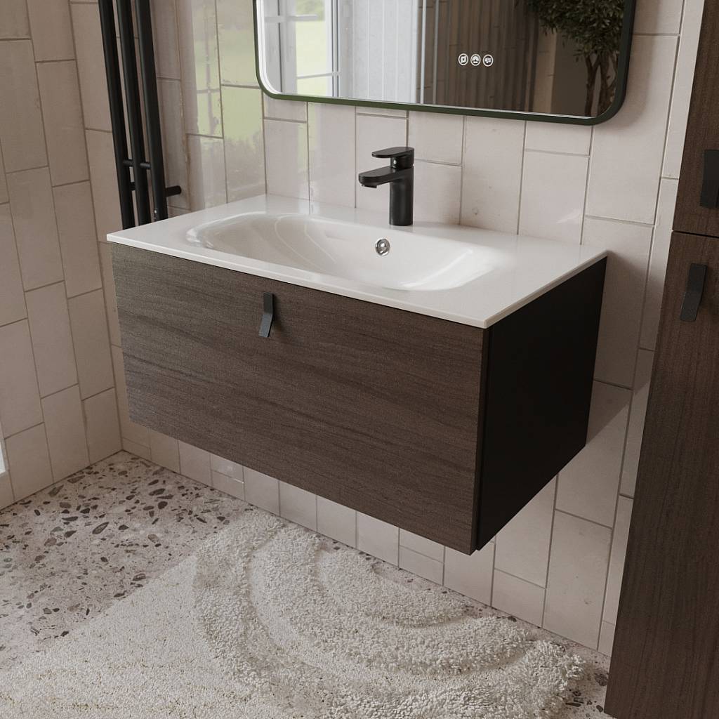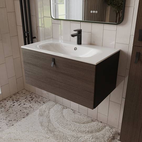 Тумба с раковиной подвесная (80см) Terminus Kontur KON10801200001O, венге/графит купить за 43 990 руб.
