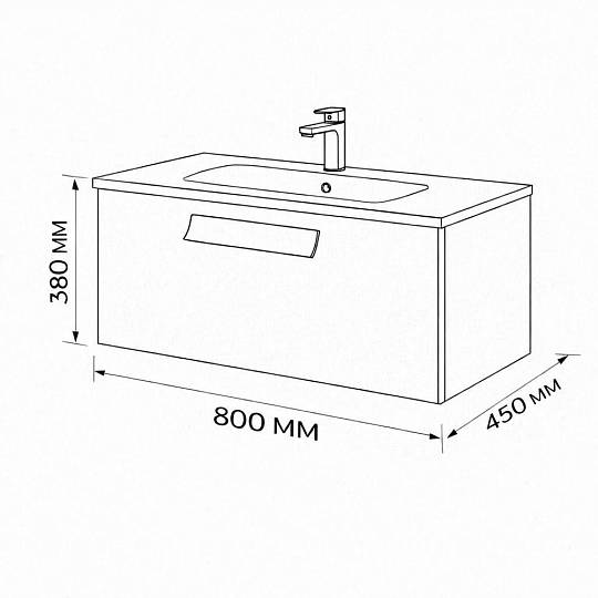 Тумба с раковиной подвесная (80см) Terminus Noto NOT10801099901O, черный soft touch купить за 47 490 руб.
