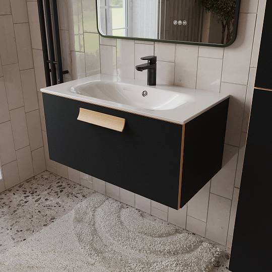 Тумба с раковиной подвесная (80см) Terminus Noto NOT10801099901O, черный soft touch