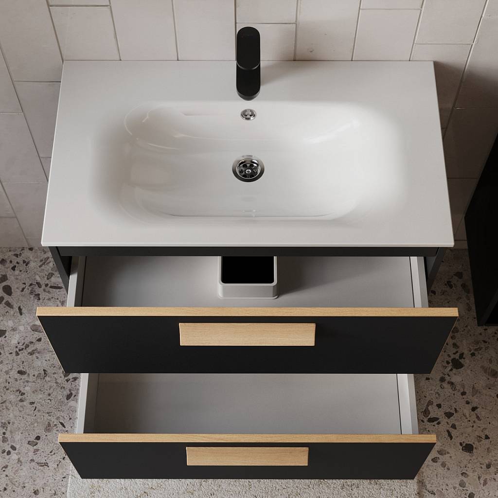 Тумба с раковиной подвесная (80см) Terminus Noto NOT10802099901O, черный soft touch