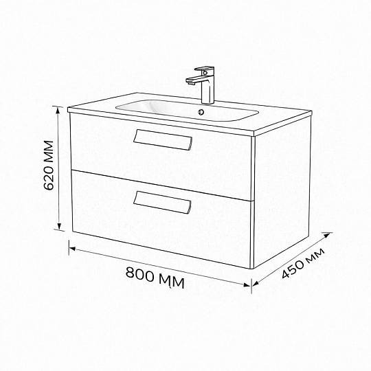 Тумба с раковиной подвесная (80см) Terminus Noto NOT10802099901O, черный soft touch. Раковина из литьевого мрамора в комплекте: диаметр отверстия под смеситель: 35, диаметр отверстия слива: 45 мм, диаметр отверстия перелива: 30 мм. Ширина тумбы: 800 мм. Тип фасада: Гладкий фасад с ручками из массива. Материал ящиков: ДСП. Количество ящиков: 2. Сифон и данный клапан приобретаются отдельно и в комплект поставки не входят. В тумбе установлена фурнитура Firmax. Система открывания: Древесные ручки . Технология направляющих: Soft-Close, полного выдвижения, с доводчиком. Тумба поставляется в сборе. Гарантийный срок 2 года.