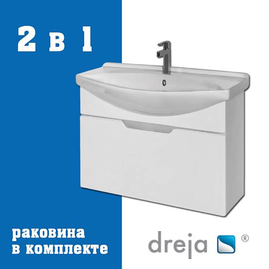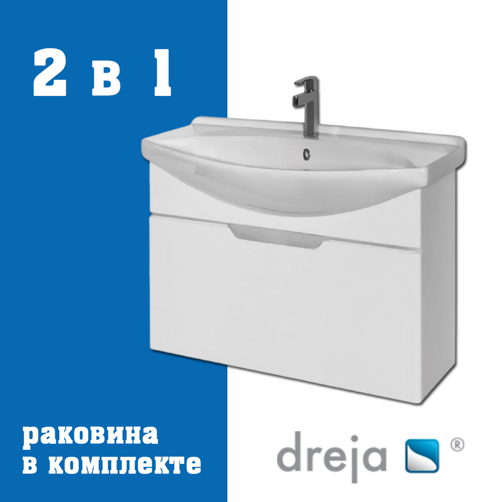 Тумба под раковину подвесная Dreja Laguna 75 см, белый. Фурнитура: Hettich. Компоновка: 1 ящик. Монтаж: подвесной. Раковина арт.: 28230 в комплекте.