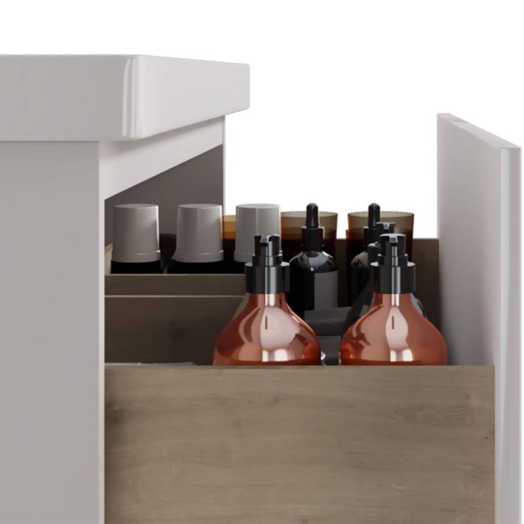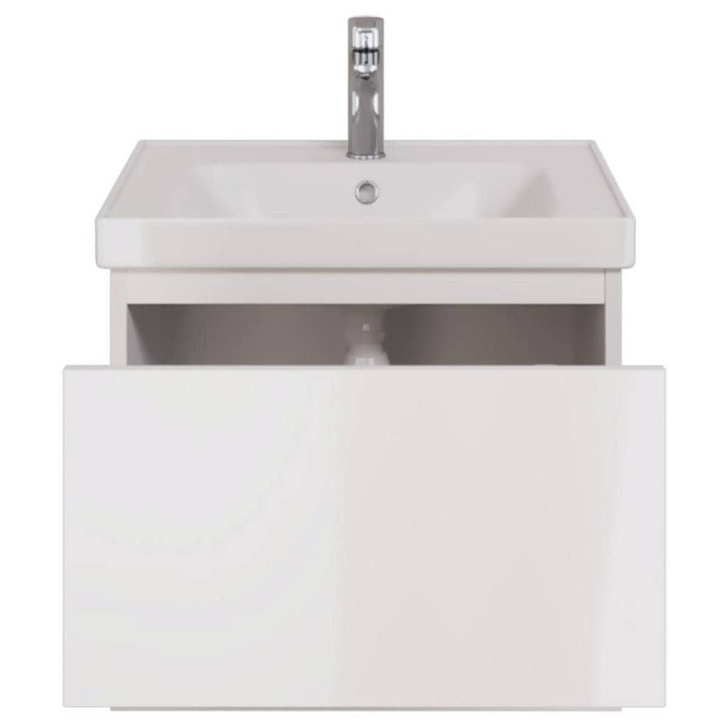 Тумба под раковину подвесная Dreja Perfecto 60 см, белый. Фурнитура: Hettich. Компоновка: 1 ящик. Дополнительные функции: встроенный органайзер в верхнем ящике, механизм открывания  push-to-open. Монтаж: подвесной. Раковина арт.: 641587 в комплекте.