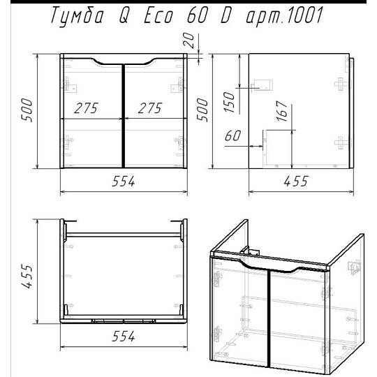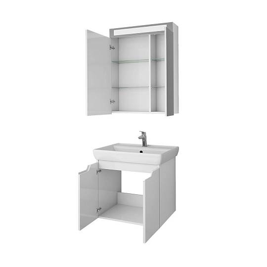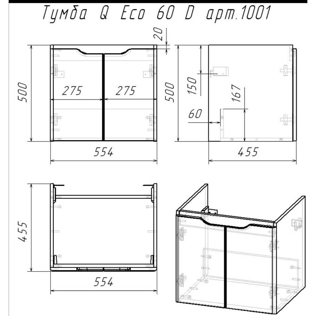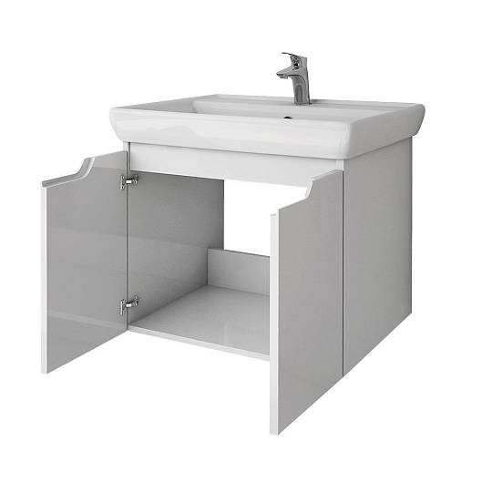 Тумба под раковину подвесная Dreja Q(D) 60 см, белый. Фурнитура: Hettich. Компоновка: 2 дверцы, 1 полка. Монтаж: подвесной. Раковина арт.: 191638 в комплекте.