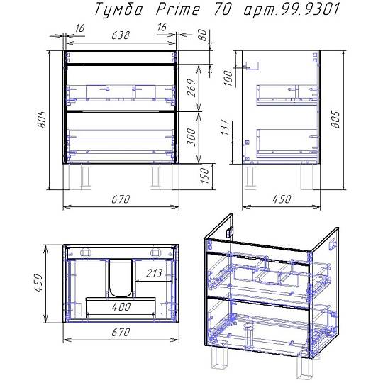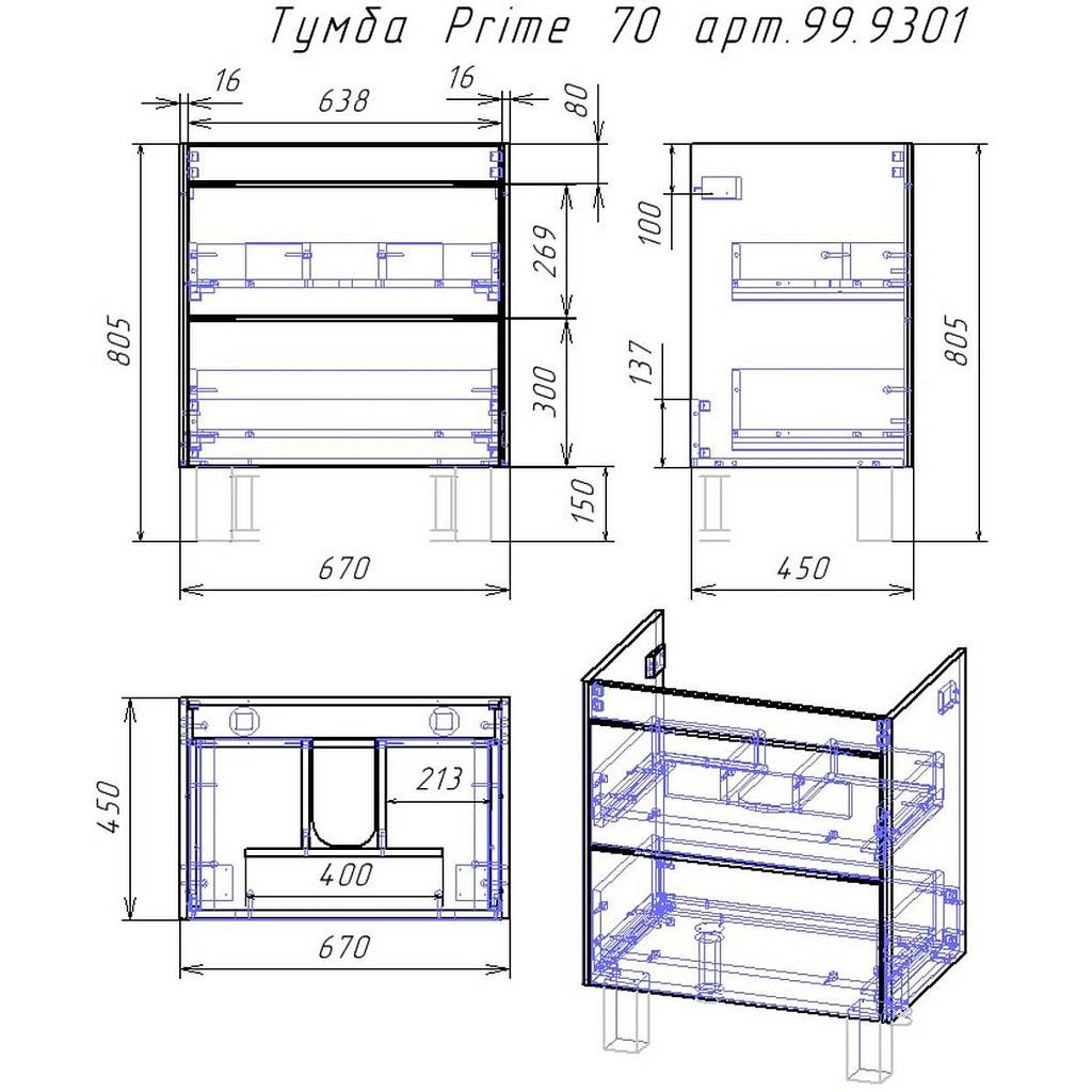 Тумба под раковину подвесная/напольная Dreja Prime 70 см, белый. Фурнитура: Hettich. Компоновка: 2 ящика. Дополнительные функции: встроенный органайзер в верхнем ящике. Монтаж: подвесной/напольный. Возможен напольный монтаж - необходимо отдельно приобрести ножки Dreja арт.: 99.9811 Раковина арт.: 641600 в комплекте.