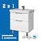 Тумба под раковину подвесная/напольная Dreja Q Plus 80 см, белый. Фурнитура: Hettich. Компоновка: 2 ящика. Дополнительные функции: встроенный органайзер в верхнем ящике. Монтаж: подвесной/напольный. Для монтажа необходимо закрепить тумбу к стене и использовать входящие в комплект поставки опоры. Раковина арт.: 192185 в комплекте.