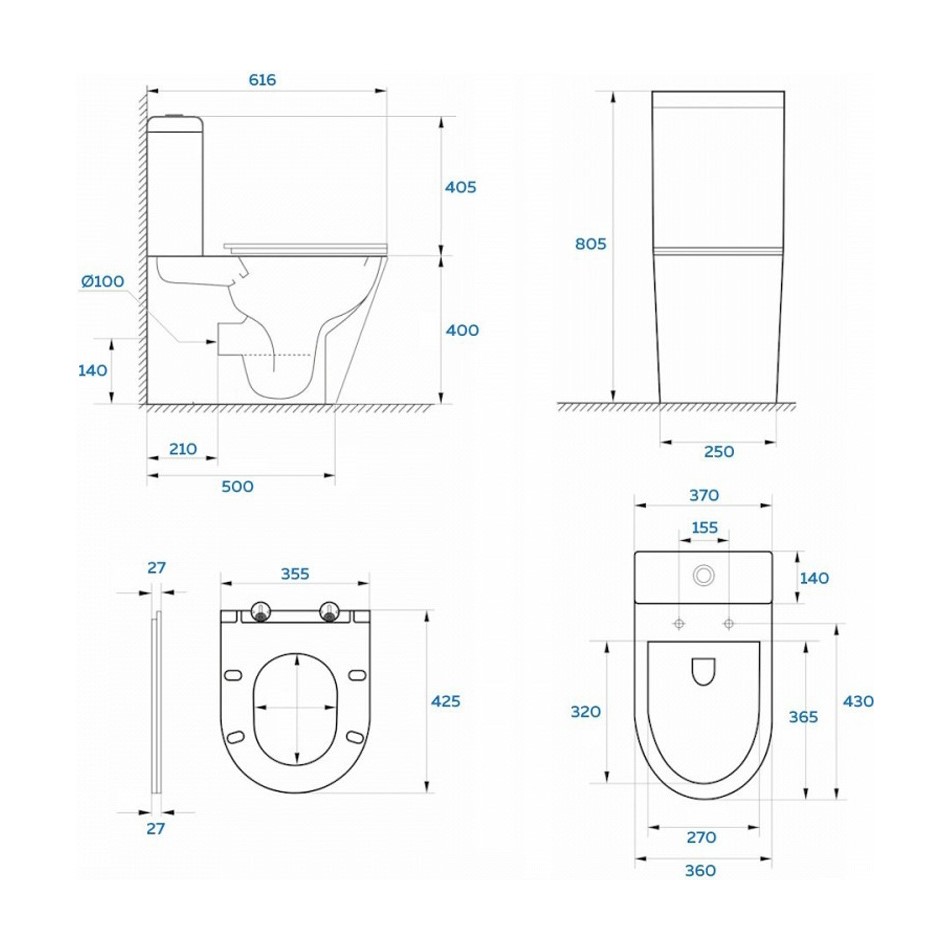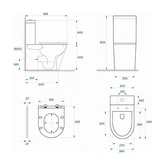 Унитаз-компакт KUBUS, 103-KUB13. Размер: 616x370x805 мм. Безободковый. Цвет: белый. Сиденье дюропласт с функцией плавного закрывания Soft Close, легкосъемное. 2-режимная сливная арматура 3/6 л. Система антивсплеск. Комплект крепления.