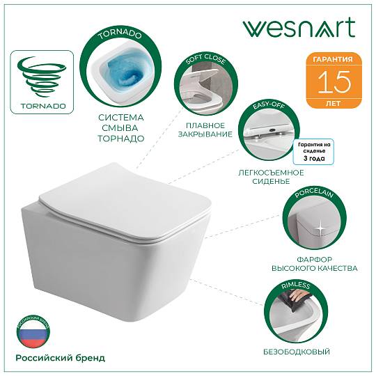 Унитаз подвесной WesnaArt KUBUS TORNADO 215-KUB13, белый купить по цене 15 400 руб.