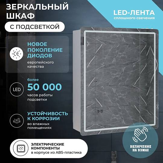Зеркальный шкаф VIGO Geometry 453, 50 см: 1 дверца, петли с механизмом доводчика, 2 стеклянных полки, светодиодная подсветка по периметру, бесконтактное включение (на взмах).
