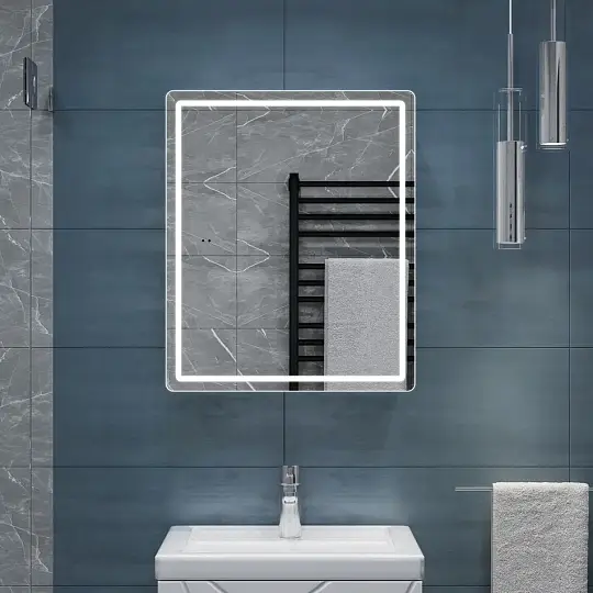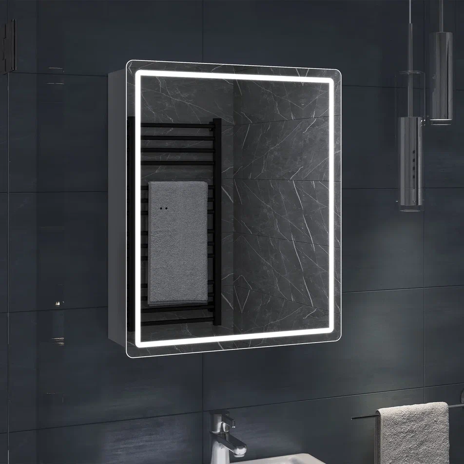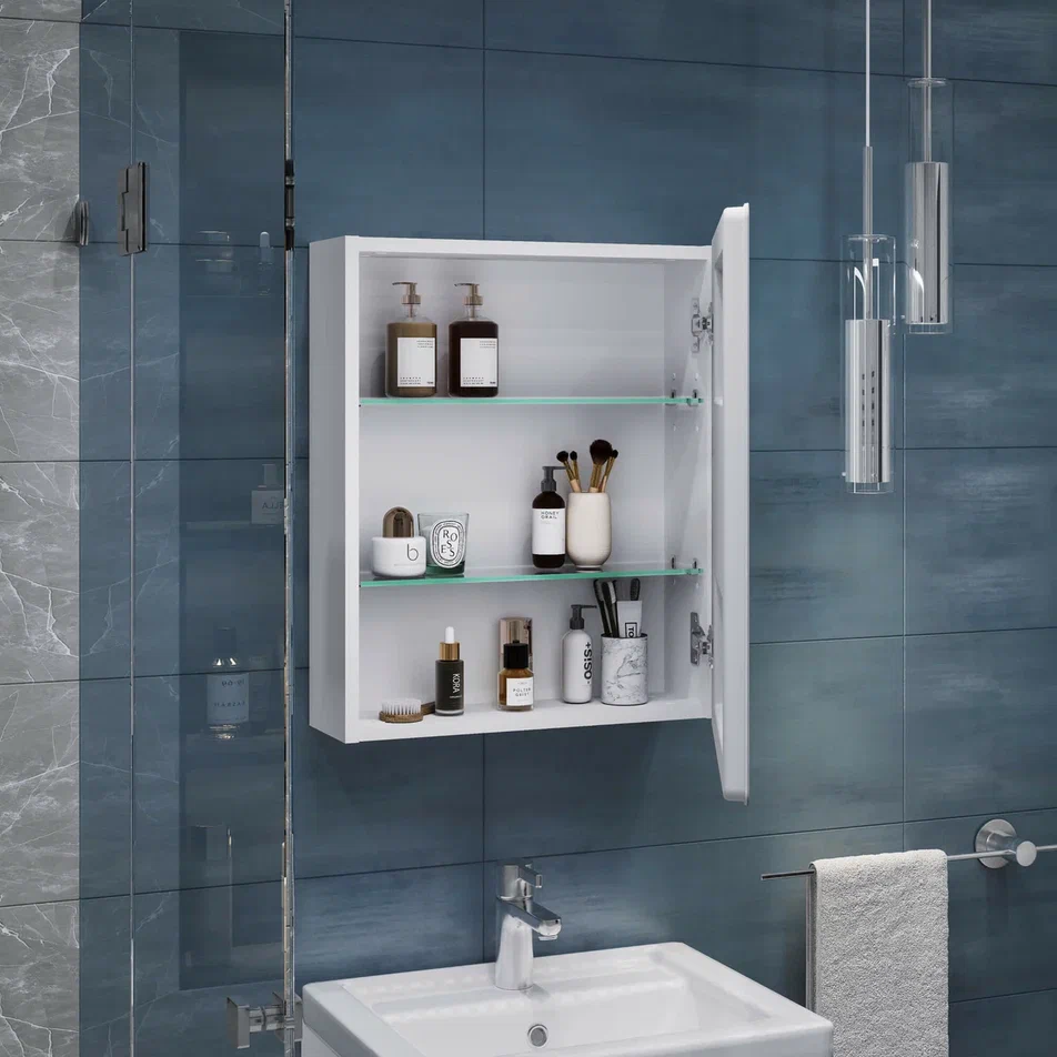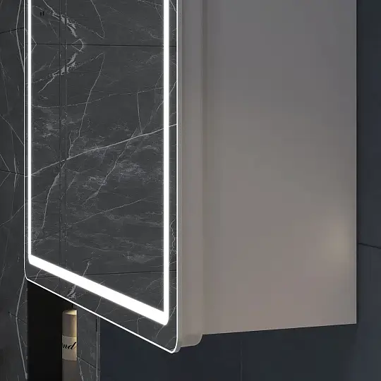 Зеркальный шкаф VIGO Geometry 454, 50 см: 1 дверца, петли с механизмом доводчика, 2 стеклянных полки, светодиодная подсветка по периметру, бесконтактное включение (на взмах), функция антизапотевания.