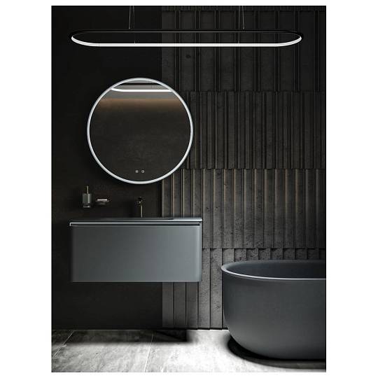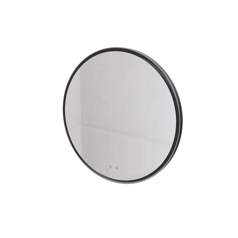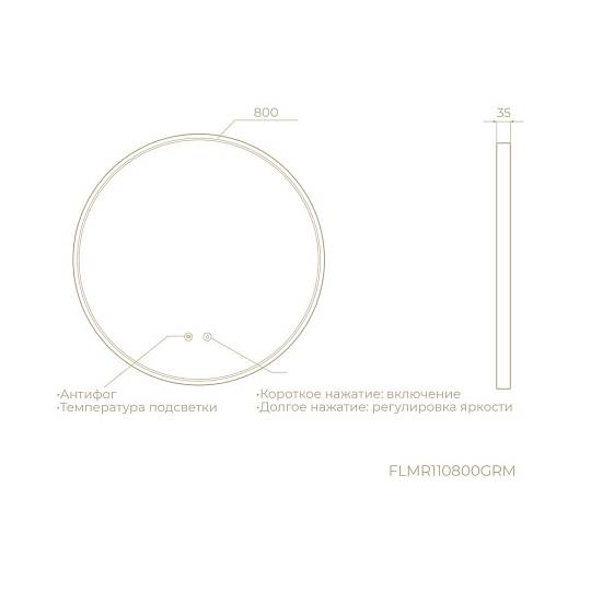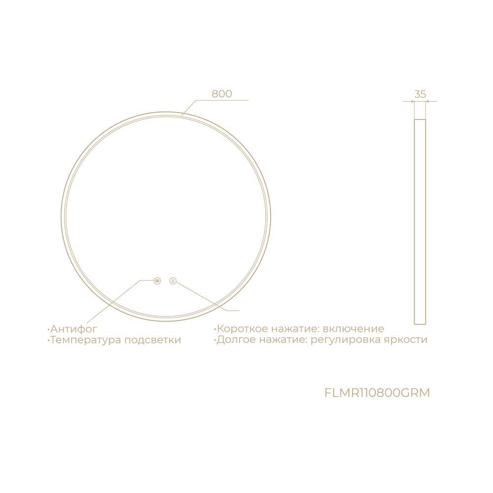 Круглое зеркало с диммируемой LED подсветкой и антифогом в цвете «графит». Регулировка яркости и температуры в диапазоне от 3000К до 6000К. Сенсорное управление с помощью 2х кнопок на зеркальном полотне.