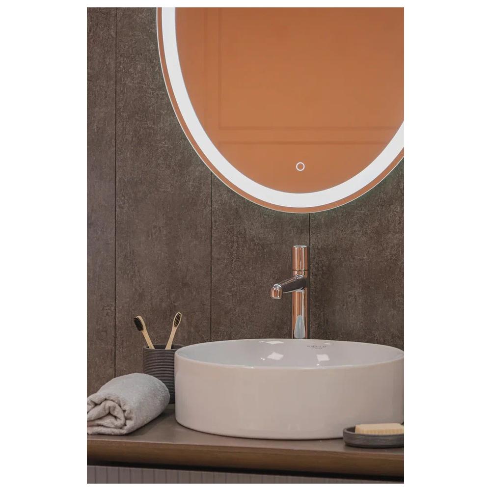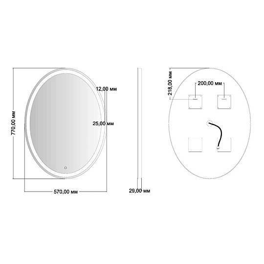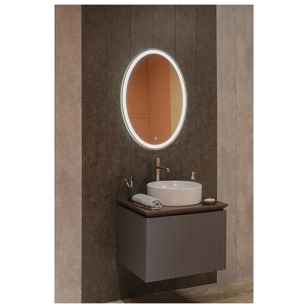 "Италия" 570х770 (сенсорный выключатель) зеркало. Овальное зеркало с LED-подсветкой — воплощение стремления к гармонии и балансу. Правильная и дружелюбная форма, плавные линии без углов и мягкое свечение, которое легко регулируется сенсорным выключателем с функцией диммера, успокаивают, делают пространство уютным и располагающим. Рисунок подсветки создаёт иллюзию лаконичного обрамления и добавляет интерьеру нотку элегантности. В спальне это зеркало создаст атмосферу расслабленности и комфорта, в гостиной — благополучия, а в прихожей — гостеприимства.