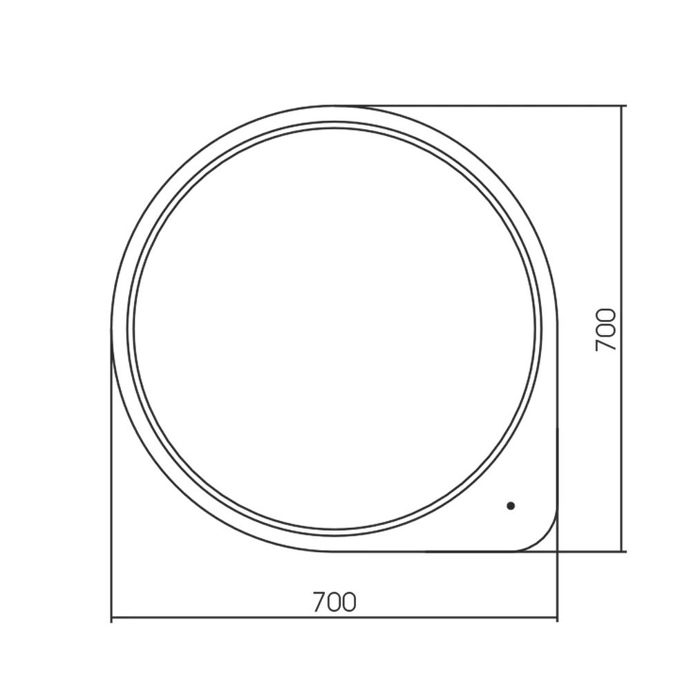 "Richi-ТХ" D700 (бесконтактный сенсор) зеркало. Зеркало необычной формы с LED-подсветкой. Направленный свет обеспечивает мягкое освещение лица без теней и бликов.  Управляется бесконтактным сенсорным способом: на взмах руки. Функция смены температуры подсветки позволяет выбрать один из 3-х режимов свечения (тёплый, нейтральный, холодный), функция диммера — плавно отрегулировать яркость. Функция памяти предназначена для запоминания последней настройки яркости. Долговечное влагостойкое серебряное зеркальное полотно от ведущих мировых марок AGC и Sisecam отличается идеальным отражением без искажений и самым высоким показателем коррозийной стойкости.
