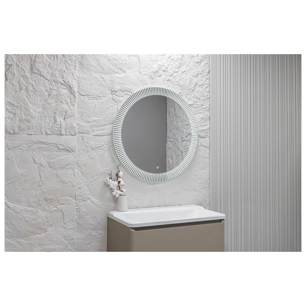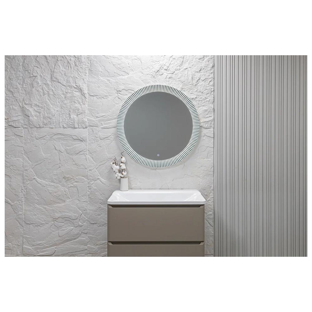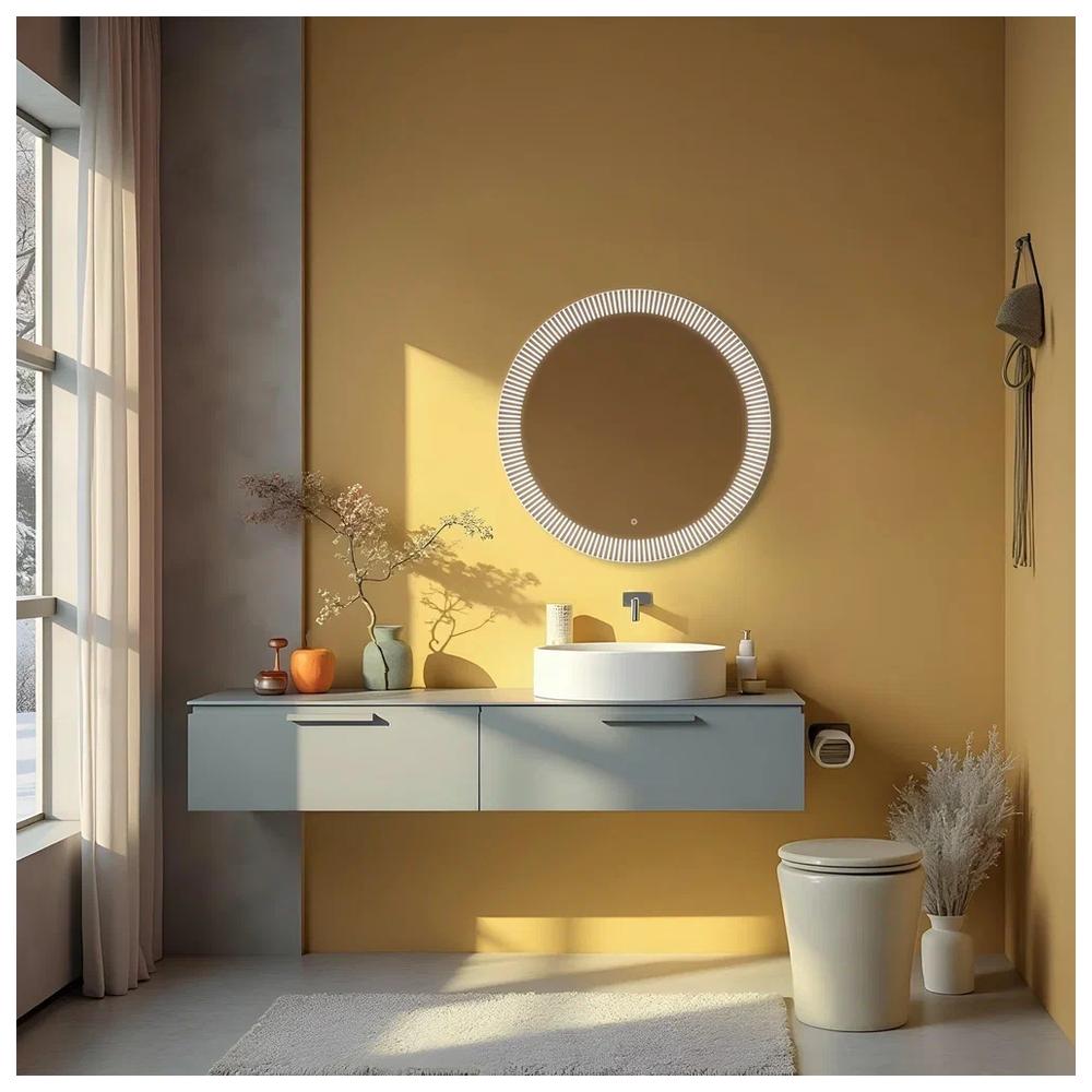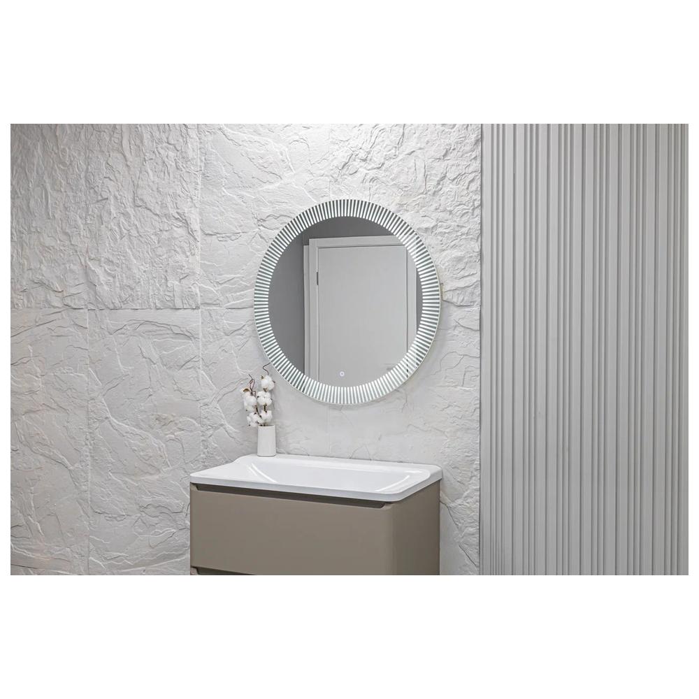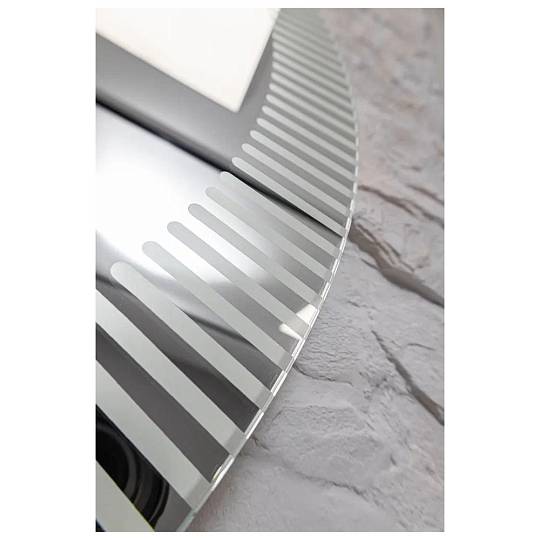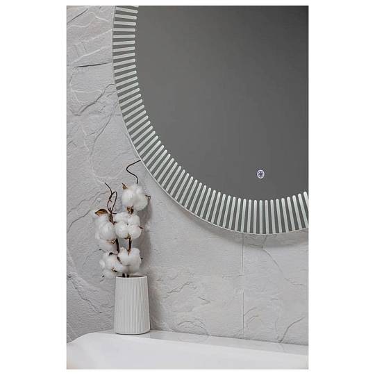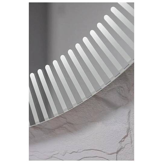 "Santy - S" D770 (бегущий свет, сенсорный выключатель) зеркало. Круглое, трендовое зеркало с функцией «бегущий свет». Пять режимов, выбор скорости (три диапазона) и плавное диммирование яркости помогут создать в интерьере особую атмосферу. Художественный рисунок подсветки обеспечивает направленное, мягкое освещение лица без теней и бликов и украшает интерьер. Управляется сенсорным выключателем. Функция диммера позволяет плавно отрегулировать яркость. Функция памяти предназначена для запоминания последней настройки яркости. Долговечное влагостойкое серебряное полотно от ведущих мировых марок AGC и Sisecam отличается идеальным отражением без искажений и самым высоким показателем коррозийной стойкости. Эстетичная полированная кромка делает зеркало безопасным в использовании.