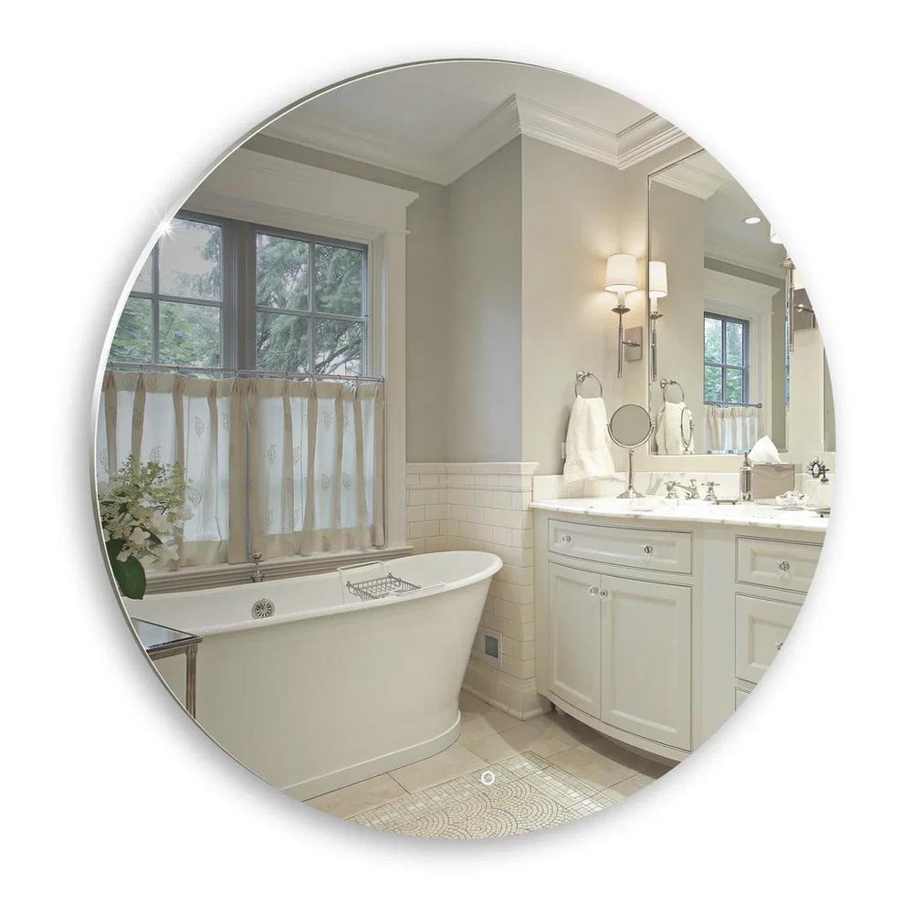 "Саванна" D770 (сенсорный выключатель) зеркало. Зеркало идеально круглой, «чистой» формы буквально растворяется в пространстве, смотрится легко и невесомо. LED-подсветка, расположенная за отражающей поверхностью, придаёт простой геометрии изысканности: зеркало как будто парит в воздухе. Мягкое рассеянное свечение, регулируемое сенсорным выключателем с функцией диммера, подчёркивает эффект новизны и свежести. Стилистика модели позволяет вписать её в любое пространство, сочетать с любыми цветами и элементами декора. Зеркало смягчит строгую классику, подчеркнёт уют скандинавского стиля, привнесёт больше футуристических черт в хай-тек интерьера.