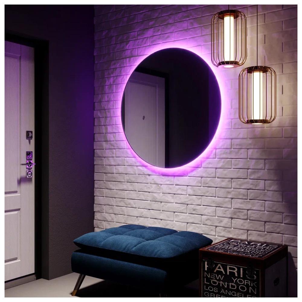 "Savanna RGB" D1000 (SMART-управление, доп. упаковка) зеркало. Зеркало со смарт-управлением, которое легко впишется в ваш современный «умный» дом. По одной команде — с помощью смартфона или голосом — идеальная, «чистая» форма круга без обрамления станет ярким акцентом интерьера. Для этого нужно всего лишь выбрать один из сценариев RGB-подсветки. Цвет жизненно необходим любому пространству, тем более сдержанному, поэтому модель как нельзя лучше «оживит» современные лаконичные интерьеры: простой, функциональный контемпорари, холодный минимализм, монохромное пространство. А ещё это зеркало устроит для вас праздник: просто включите режим «цветомузыка» под любимые музыкальные треки. Модель совместима с системами «умный дом», поддерживающими роуминг сервиса Magic Home Pro, со смартфонами на базе Android и IOS.