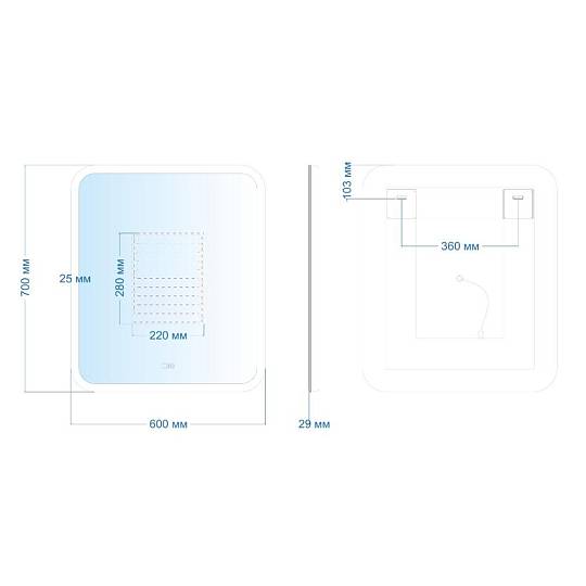 "Стив" 600х700  - 2 (подогрев, сенсорный выключатель) зеркало. Прямоугольное зеркало с LED-подсветкой, обеспечивающей направленное освещение лица без теней и бликов. Управляется сенсорным выключателем. Функция диммера позволяет плавно отрегулировать яркость. Функция памяти предназначена для запоминания последней настройки яркости. Функция подогрева исключает запотевание зеркальной поверхности в ванной комнате. Долговечное влагостойкое серебряное полотно от ведущих мировых марок AGC и Sisecam отличается идеальным отражением без искажений и самым высоким показателем коррозийной стойкости. Эстетичная полированная кромка делает зеркало безопасным в использовании.