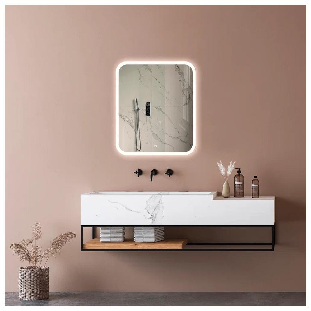 "Стив" 680х800 (сенсорный выключатель) зеркало. Прямоугольное зеркало с LED-подсветкой, обеспечивающей направленное, мягкое освещение лица без теней и бликов. Управляется сенсорным выключателем. Функция диммера позволяет плавно отрегулировать яркость. Функция памяти предназначена для запоминания последней настройки яркости. Долговечное влагостойкое серебряное полотно от ведущих мировых марок AGC и Sisecam отличается идеальным отражением без искажений и самым высоким показателем коррозийной стойкости. Эстетичная полированная кромка делает зеркало безопасным в использовании.